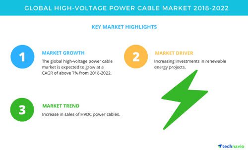依據(jù)Technavio發(fā)布的新的商場研究報告,全球高壓電力電纜商場估計在2018-2022年期間復合年添加率將超越7%。